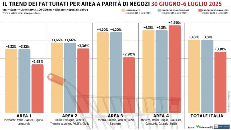 I dati di NielsenIQ certificano il nono avanzamento consecutivo per la distribuzione moderna nazionale